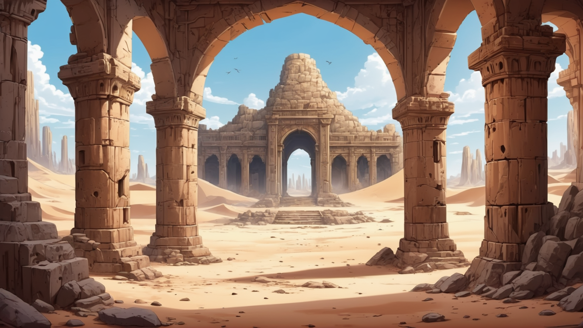 砂に埋もれた古代遺跡。冒険や探索シーンの背景に。