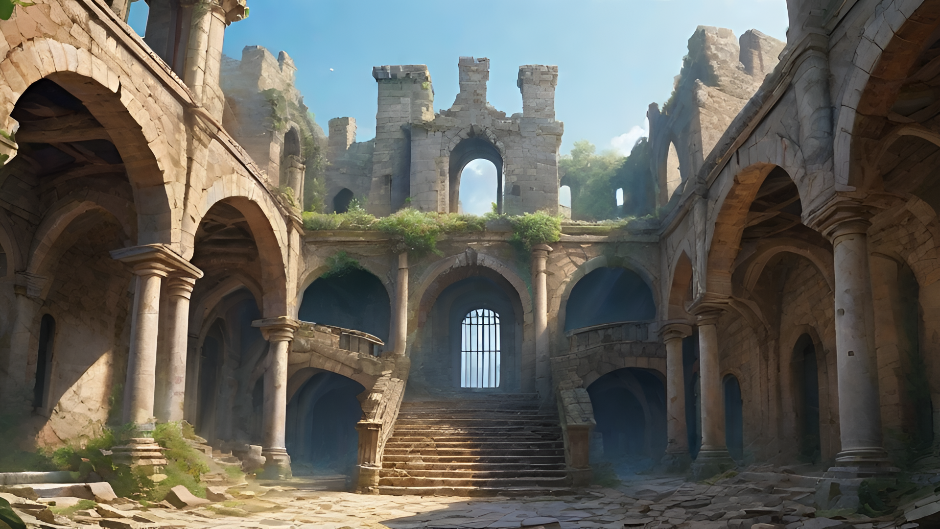 印象的な空間をイメージした幻想的な空間で、ファンタジーRPGの拠点におすすめです。バランスの良いトーンのグレー系の色味で、配信背景や資料素材にも使いやすい雰囲気です。