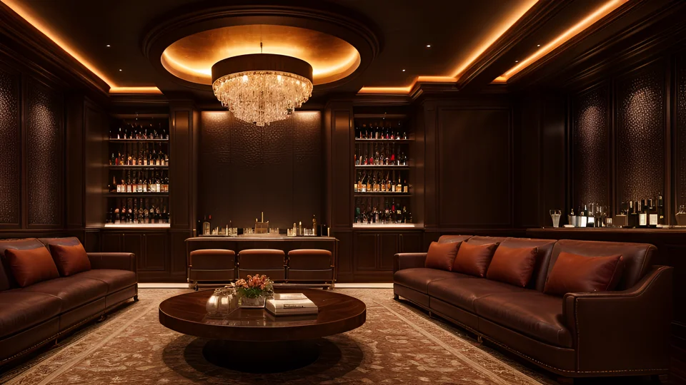 豪華な内装のVIPルーム。高級感のある背景素材。ビジネスシーンや富裕層の設定、高級店やホテルの背景などに最適。商用利用OK・クレジット不要。
